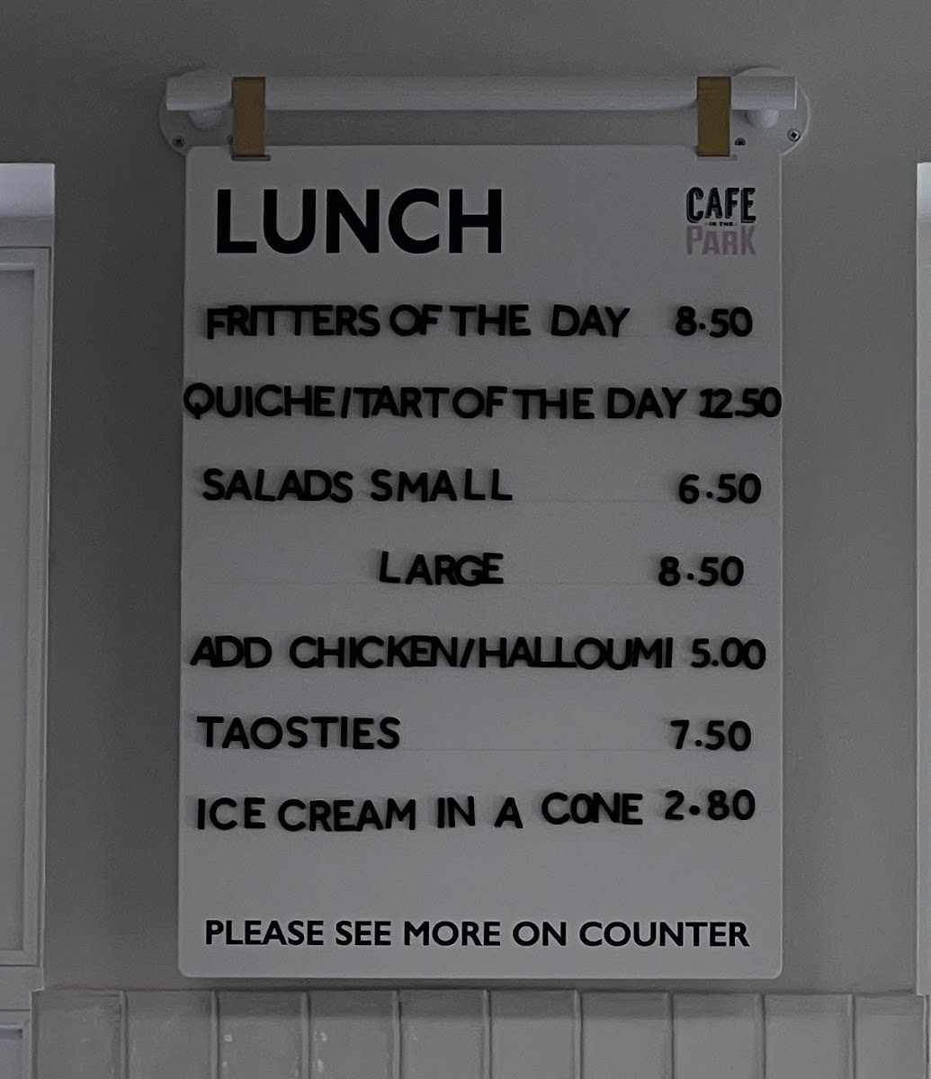 The Tea Pavilion by The Cafe in the Park Menu
